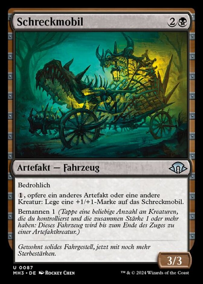 | Rules | Menace , Sacrifice another artifact or creature: Put a +1/+1 counter on Dreadmobile. Crew 1 (Tap any number of creatures you control with total power 1 or more: This Vehicle becomes an artifact creature until end of turn.) |