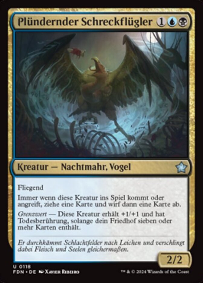 | Rules | Flying Whenever this creature enters or attacks, draw a card, then discard a card. Threshold — This creature gets +1/+1 and has deathtouch as long as there are seven or more cards in your graveyard. |