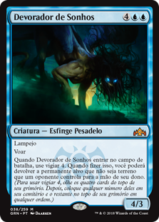 | Rules | Flash Flying When Dream Eater enters the battlefield, surveil 4. When you do, you may return target nonland permanent an opponent controls to its owner's hand. (To surveil 4, look at the top four cards of your library, then put any number of them into your graveyard and the rest on top of your library in any order.) |