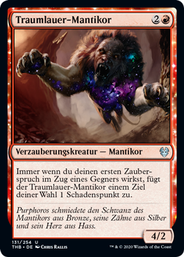 | Rules | Whenever you cast your first spell during each opponent's turn, Dreamstalker Manticore deals 1 damage to any target. |