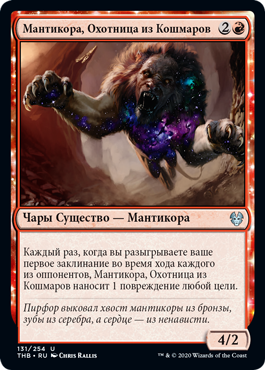 | Rules | Whenever you cast your first spell during each opponent's turn, Dreamstalker Manticore deals 1 damage to any target. |