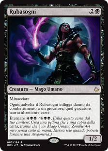 | Rules | Menace Whenever Dreamstealer deals combat damage to a player, that player discards that many cards. Eternalize (, Exile this card from your graveyard: Create a token that's a copy of it, except it's a 4/4 black Zombie Human Wizard with no mana cost. Eternalize only as a sorcery.) |