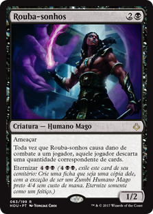 | Rules | Menace Whenever Dreamstealer deals combat damage to a player, that player discards that many cards. Eternalize (, Exile this card from your graveyard: Create a token that's a copy of it, except it's a 4/4 black Zombie Human Wizard with no mana cost. Eternalize only as a sorcery.) |