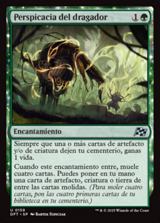 | Rules | Whenever one or more artifact and/or creature cards leave your graveyard, you gain 1 life. When this enchantment enters, mill four cards. You may put an artifact, creature, or land card from among the milled cards into your hand. (To mill four cards, put the top four cards of your library into your graveyard.) |