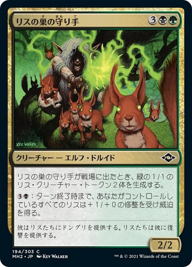| Rules | When Drey Keeper enters the battlefield, create two 1/1 green Squirrel creature tokens. : Squirrels you control get +1/+0 and gain menace until end of turn. |