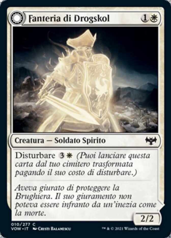 | Rules | Disturb (You may cast this card from your graveyard transformed for its disturb cost.) // Enchant creature Enchanted creature gets +2/+2. If Drogskol Armaments would be put into a graveyard from anywhere, exile it instead. |