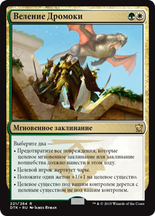 | Rules | Choose two — • Prevent all damage target instant or sorcery spell would deal this turn. • Target player sacrifices an enchantment. • Put a +1/+1 counter on target creature. • Target creature you control fights target creature you don't control. |