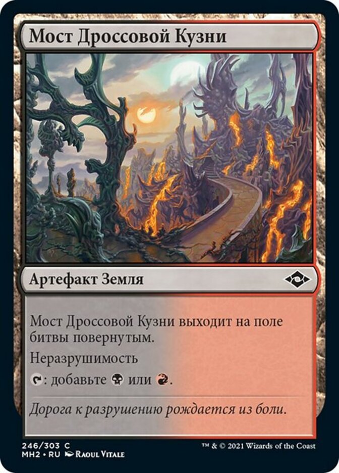 | Rules | Drossforge Bridge enters the battlefield tapped. Indestructible : Add or . |