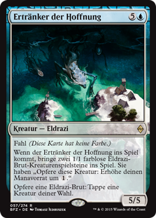| Rules | Devoid (This card has no color.) When Drowner of Hope enters the battlefield, create two 1/1 colorless Eldrazi Scion creature tokens. They have "Sacrifice this creature: Add ." Sacrifice an Eldrazi Scion: Tap target creature. |