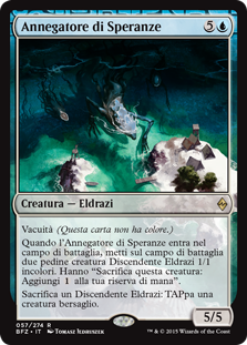 | Rules | Devoid (This card has no color.) When Drowner of Hope enters the battlefield, create two 1/1 colorless Eldrazi Scion creature tokens. They have "Sacrifice this creature: Add ." Sacrifice an Eldrazi Scion: Tap target creature. |