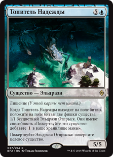 | Rules | Devoid (This card has no color.) When Drowner of Hope enters the battlefield, create two 1/1 colorless Eldrazi Scion creature tokens. They have "Sacrifice this creature: Add ." Sacrifice an Eldrazi Scion: Tap target creature. |