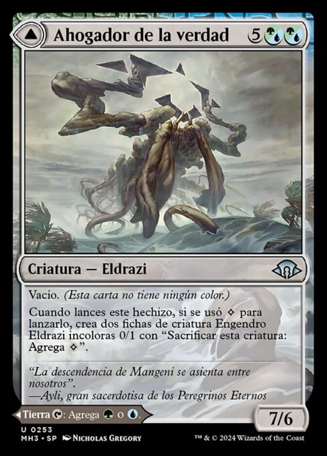 | Rules | Devoid (This card has no color.) When you cast this spell, if was spent to cast it, create two 0/1 colorless Eldrazi Spawn creature tokens with "Sacrifice this creature: Add ." // Drowned Jungle enters the battlefield tapped. : Add or . |