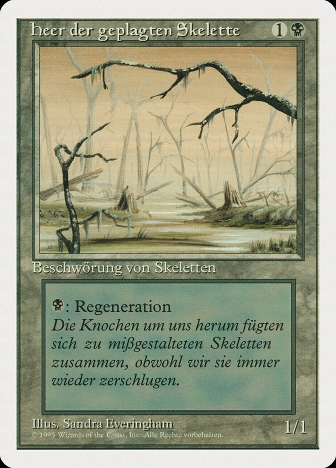 | Rules | : Regenerate Drudge Skeletons. (The next time this creature would be destroyed this turn, it isn't. Instead tap it, remove all damage from it, and remove it from combat.) |