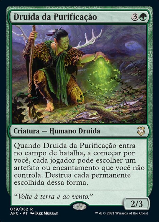 | Rules | When Druid of Purification enters the battlefield, starting with you, each player may choose an artifact or enchantment you don't control. Destroy each permanent chosen this way. |