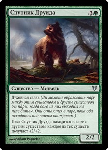 | Rules | Soulbond (You may pair this creature with another unpaired creature when either enters the battlefield. They remain paired for as long as you control both of them.) As long as Druid's Familiar is paired with another creature, each of those creatures gets +2/+2. |