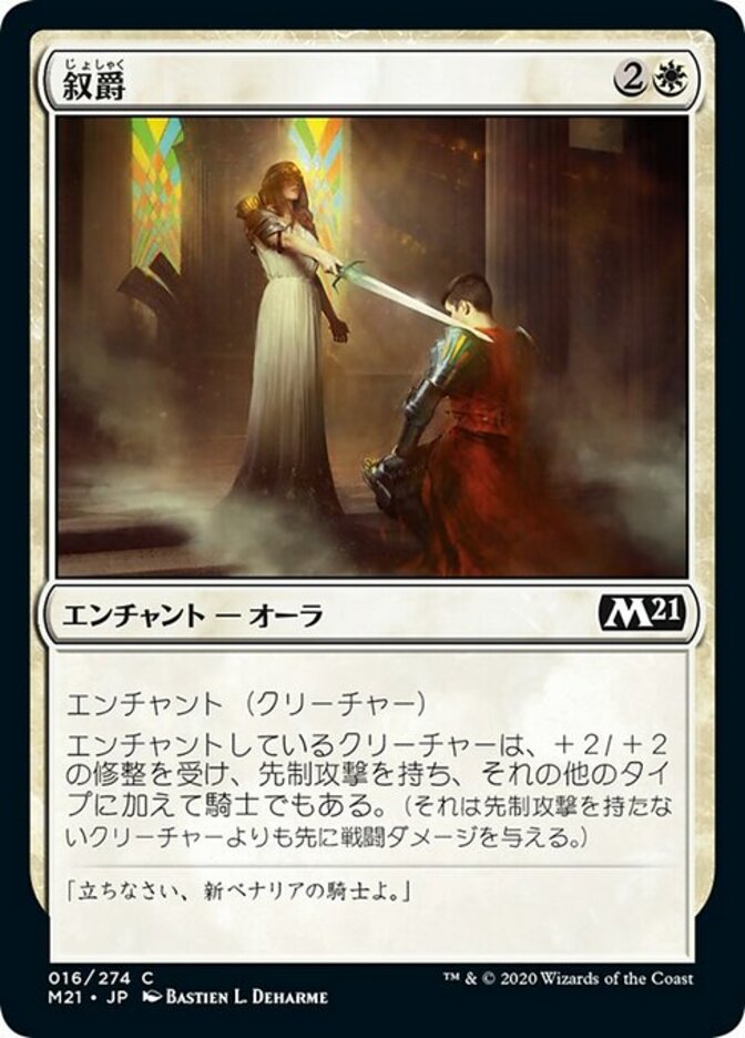 | Rules | Enchant creature Enchanted creature gets +2/+2, has first strike, and is a Knight in addition to its other types. (It deals combat damage before creatures without first strike.) |