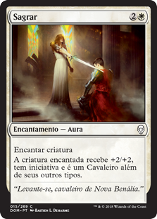 | Rules | Enchant creature Enchanted creature gets +2/+2, has first strike, and is a Knight in addition to its other types. (It deals combat damage before creatures without first strike.) |