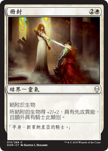 | Rules | Enchant creature Enchanted creature gets +2/+2, has first strike, and is a Knight in addition to its other types. (It deals combat damage before creatures without first strike.) |
