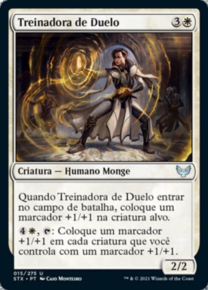 | Rules | When Dueling Coach enters the battlefield, put a +1/+1 counter on target creature. , : Put a +1/+1 counter on each creature you control with a +1/+1 counter on it. |