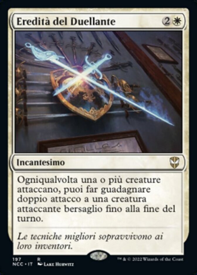 | Rules | Whenever one or more creatures attack, you may have target attacking creature gain double strike until end of turn. |
