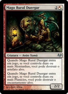 | Rules | When Duergar Hedge-Mage enters the battlefield, if you control two or more Mountains, you may destroy target artifact. When Duergar Hedge-Mage enters the battlefield, if you control two or more Plains, you may destroy target enchantment. |