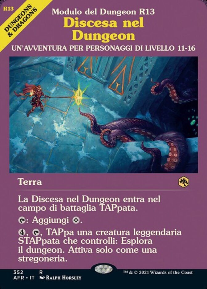 | Rules | Dungeon Descent enters the battlefield tapped. : Add . , , Tap an untapped legendary creature you control: Venture into the dungeon. Activate only as a sorcery. (Enter the first room or advance to the next room.) |