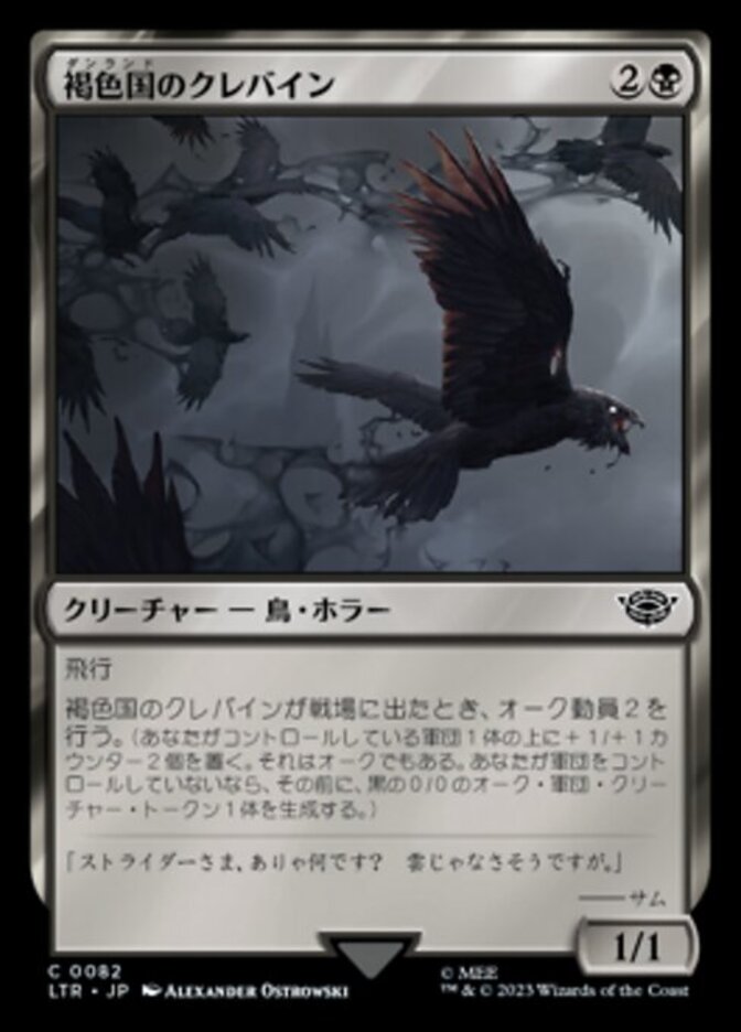| Rules | Flying When Dunland Crebain enters the battlefield, amass Orcs 2. (Put two +1/+1 counters on an Army you control. It's also an Orc. If you don't control an Army, create a 0/0 black Orc Army creature token first.) |