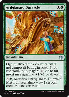 | Rules | Whenever a creature enters the battlefield under your control, you may pay . If you do, put a +1/+1 counter on that creature. , Sacrifice Durable Handicraft: Put a +1/+1 counter on each creature you control. |