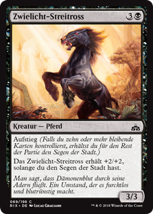 Languages Dusk Charger 暮影戰馬 Zwielicht-Streitross Batailleur du crépuscule Destriero del Vespro 薄暮の軍馬 황혼 군마 Corcel do Crepúsculo Жеребец Заката 暮影战马 Corcel del Crepúsculo