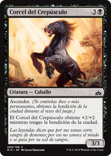 | Rules | Ascend (If you control ten or more permanents, you get the city's blessing for the rest of the game.) Dusk Charger gets +2/+2 as long as you have the city's blessing. |