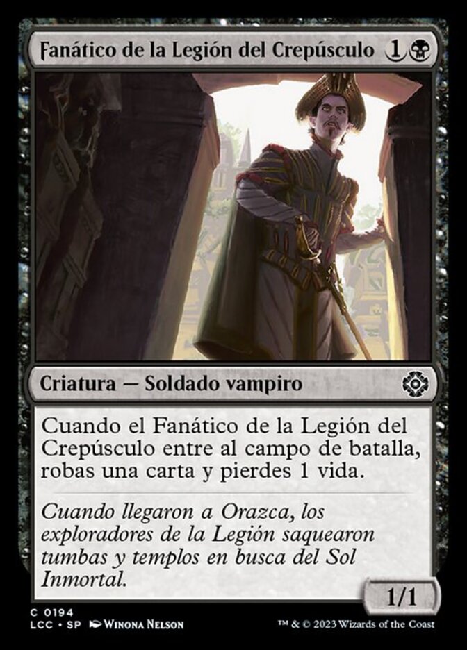 | Rules | When Dusk Legion Zealot enters the battlefield, you draw a card and you lose 1 life. |