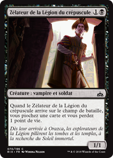 | Rules | When Dusk Legion Zealot enters the battlefield, you draw a card and you lose 1 life. |