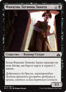 | Rules | When Dusk Legion Zealot enters the battlefield, you draw a card and you lose 1 life. |