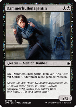 | Rules | Duskmantle Operative can't be blocked by creatures with power 4 or greater. |