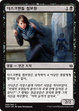 | Rules | Duskmantle Operative can't be blocked by creatures with power 4 or greater. |