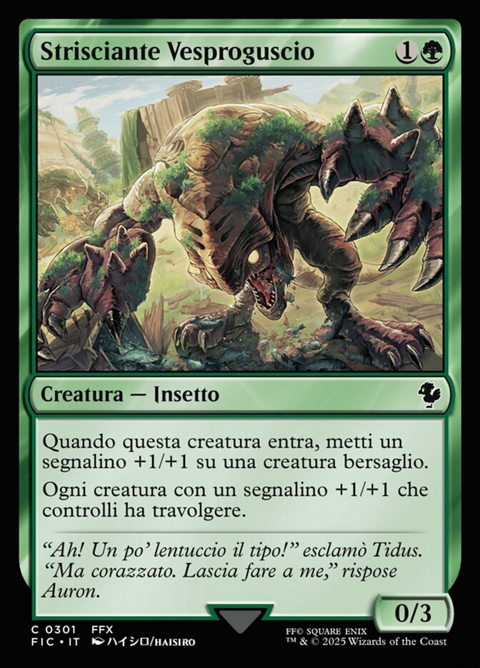 | Rules | When Duskshell Crawler enters the battlefield, put a +1/+1 counter on target creature. Each creature you control with a +1/+1 counter on it has trample. |