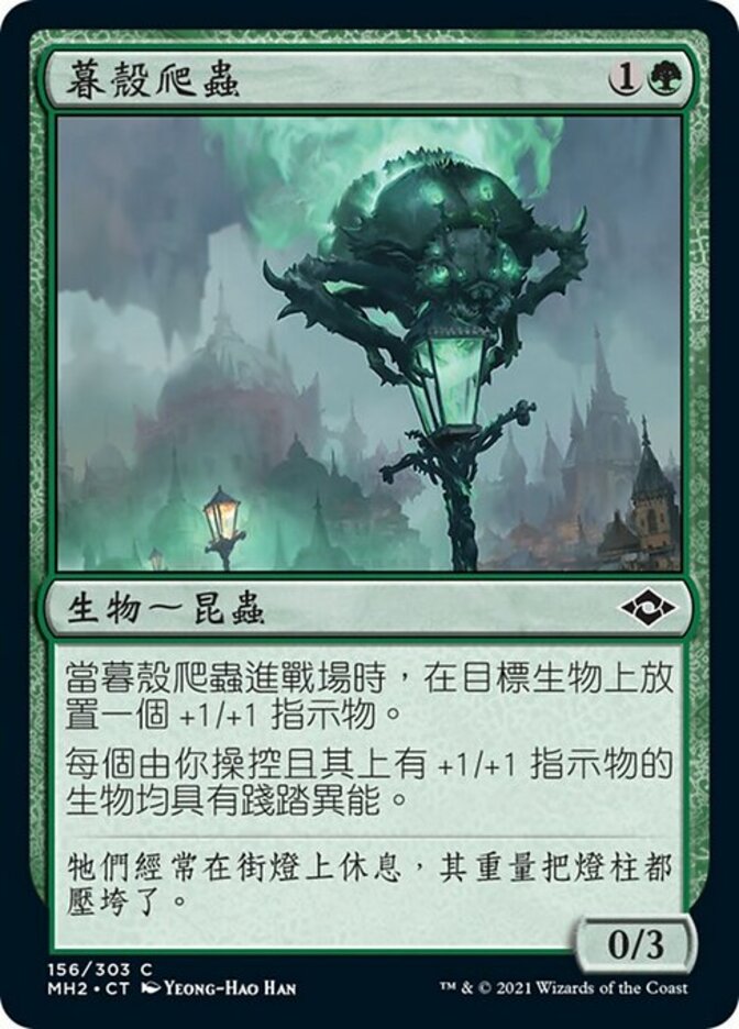 | Rules | When Duskshell Crawler enters the battlefield, put a +1/+1 counter on target creature. Each creature you control with a +1/+1 counter on it has trample. |