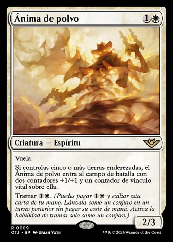 | Rules | Flying If you control five or more untapped lands, Dust Animus enters the battlefield with two +1/+1 counters and a lifelink counter on it. Plot (You may pay and exile this card from your hand. Cast it as a sorcery on a later turn without paying its mana cost. Plot only as a sorcery.) |