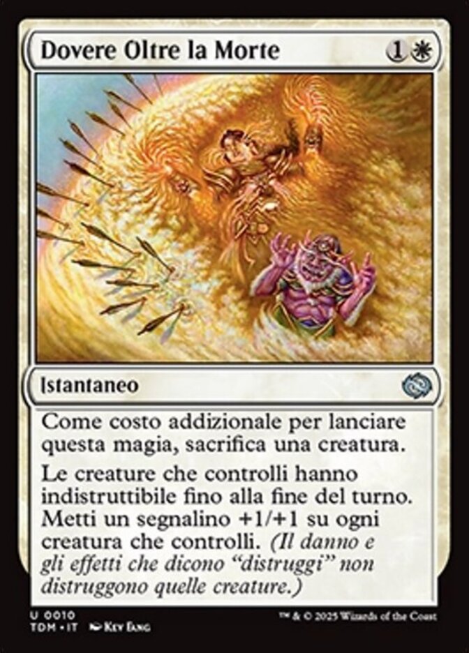 | Rules | As an additional cost to cast this spell, sacrifice a creature. Creatures you control gain indestructible until end of turn. Put a +1/+1 counter on each creature you control. (Damage and effects that say "destroy" don't destroy those creatures.) |