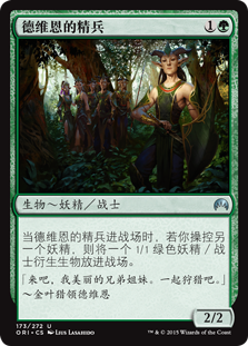 | Rules | When Dwynen's Elite enters the battlefield, if you control another Elf, create a 1/1 green Elf Warrior creature token. |