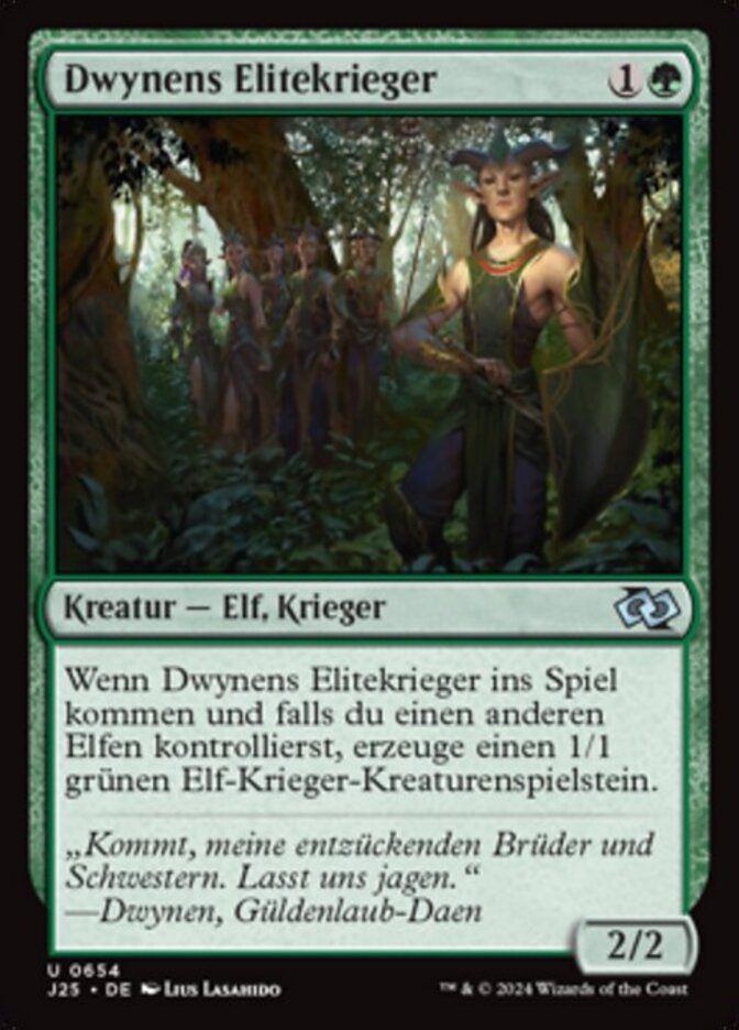 | Rules | When Dwynen's Elite enters the battlefield, if you control another Elf, create a 1/1 green Elf Warrior creature token. |