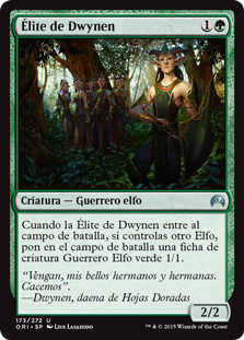 Rules When Dwynen's Elite enters the battlefield, if you control another Elf, create a 1/1 green Elf Warrior creature token.