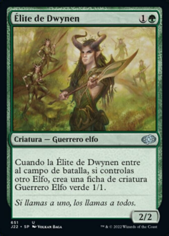 Rules When Dwynen's Elite enters the battlefield, if you control another Elf, create a 1/1 green Elf Warrior creature token.
