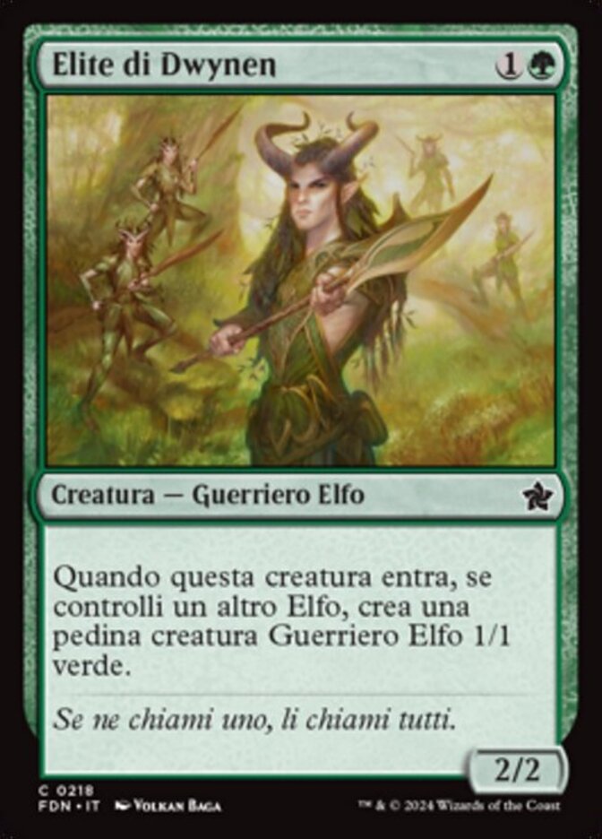 | Rules | When Dwynen's Elite enters the battlefield, if you control another Elf, create a 1/1 green Elf Warrior creature token. |