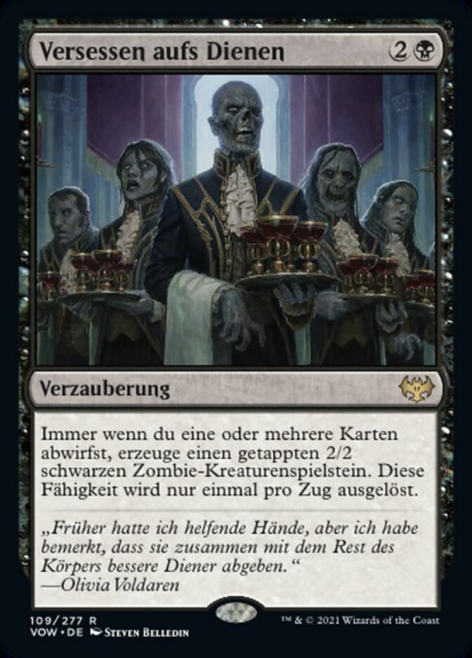 | Rules | Whenever you discard one or more cards, create a tapped 2/2 black Zombie creature token. This ability triggers only once each turn. |