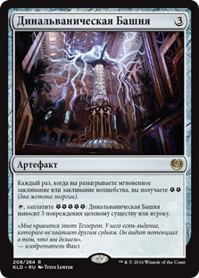 | Rules | Whenever you cast an instant or sorcery spell, you get (two energy counters). , Pay : Dynavolt Tower deals 3 damage to any target. |
