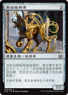 | Rules | When Eager Construct enters the battlefield, each player may scry 1. (To scry 1, look at the top card of your library, then you may put that card on the bottom of your library.) |
