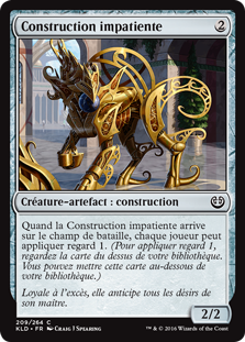 | Rules | When Eager Construct enters the battlefield, each player may scry 1. (To scry 1, look at the top card of your library, then you may put that card on the bottom of your library.) |