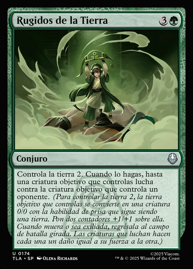 | Rules | Earthbend 2. When you do, up to one target creature you control fights target creature an opponent controls. (To earthbend 2, target land you control becomes a 0/0 creature with haste that's still a land. Put two +1/+1 counters on it. When it dies or is exiled, return it to the battlefield tapped. Creatures that fight each deal damage equal to their power to the other.) |