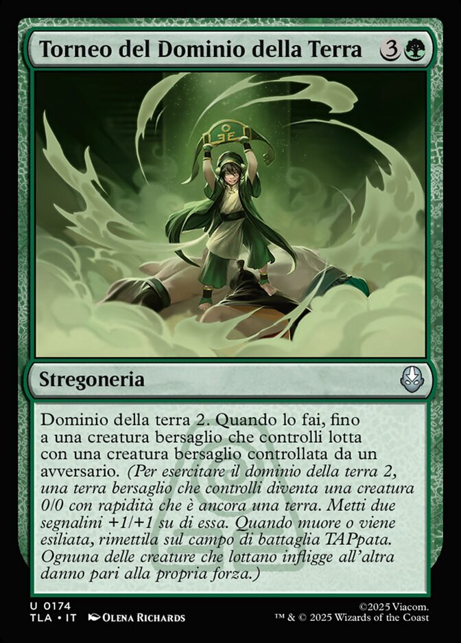 | Rules | Earthbend 2. When you do, up to one target creature you control fights target creature an opponent controls. (To earthbend 2, target land you control becomes a 0/0 creature with haste that's still a land. Put two +1/+1 counters on it. When it dies or is exiled, return it to the battlefield tapped. Creatures that fight each deal damage equal to their power to the other.) |